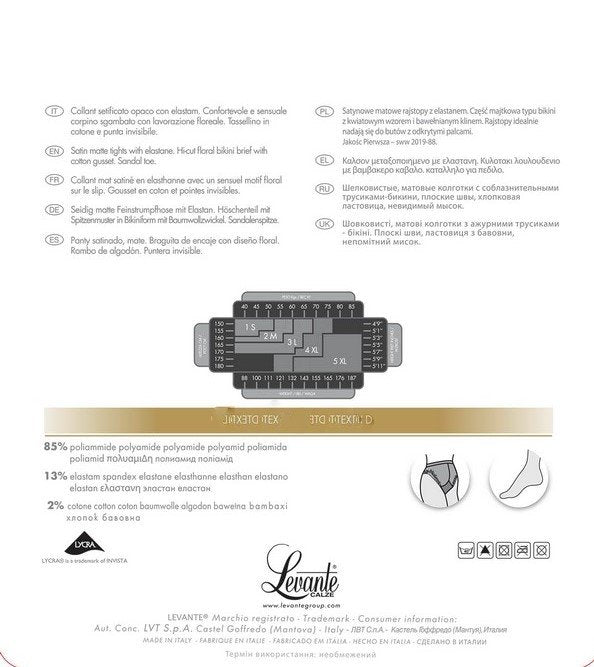 Le autoreggenti Levante 30 den uniscono raffinatezza e praticità in un capo pensato per esaltare la femminilità con discrezione e stile. Realizzate in morbida microfibra velata, offrono una copertura leggera e uniforme, perfetta per ogni occasione. Il bordo in pizzo siliconato garantisce un’ottima aderenza alla gamba senza stringere, assicurando comfort e stabilità per tutta la giornata. Disponibili in diverse tonalità, sono ideali per chi cerca un’alternativa elegante al classico collant, con un tocco di sensualità firmato Levante.