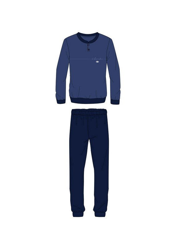 Pigiama calibrato uomo in cotone manica lunga e pantalone lungo serafino