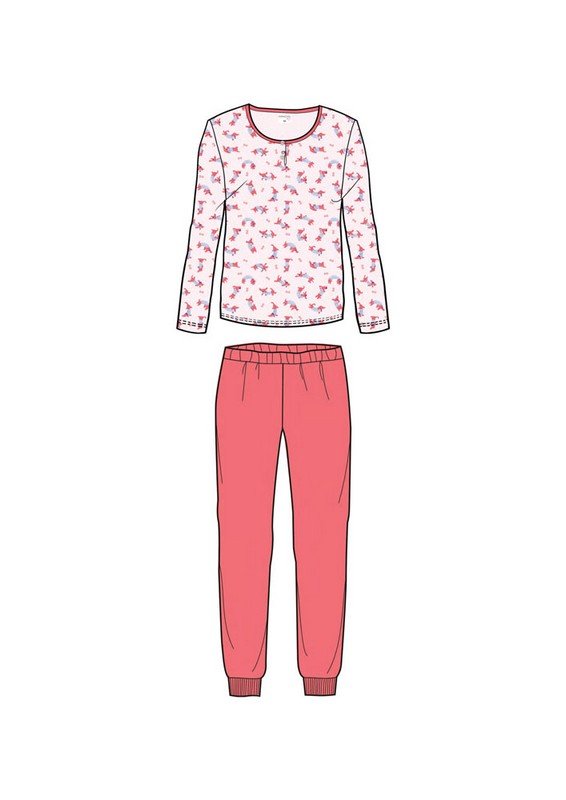 Pigiama donna cotone manica lunga pantalone lungo serafino con simpatica stampa