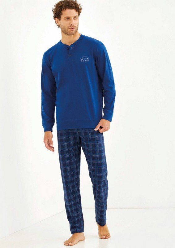 Pigiama Lungo uomo cotone il granchio con pantalone in fantasia senza polsino al fondo