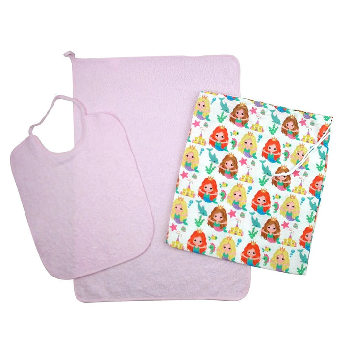 Tris Asilo con asciugamano 37x48 + bavaglino 27x34 + sacchetto 32x37 100% cotone