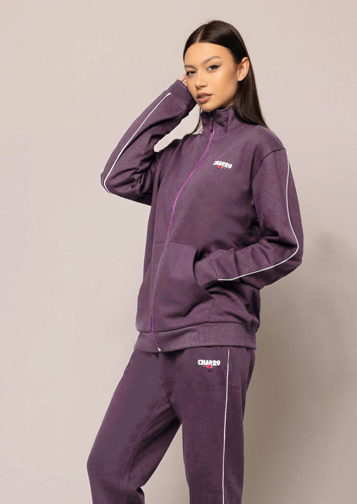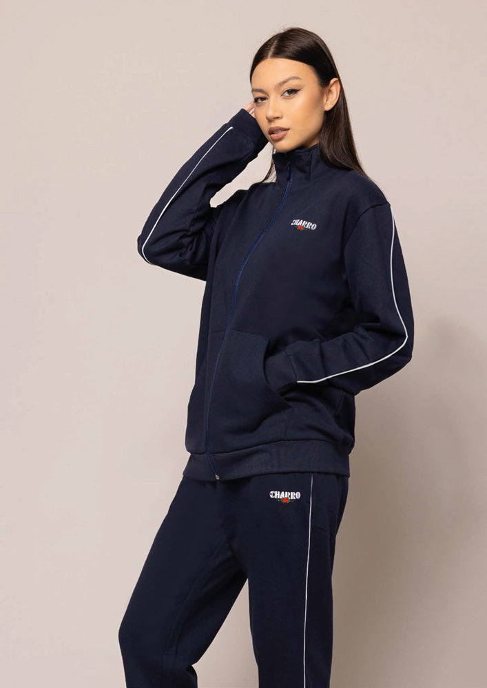 Tuta full zip collo alto manica lunga e tasche laterali donna con ricamo stampa, pantalone lungo con bande laterali.